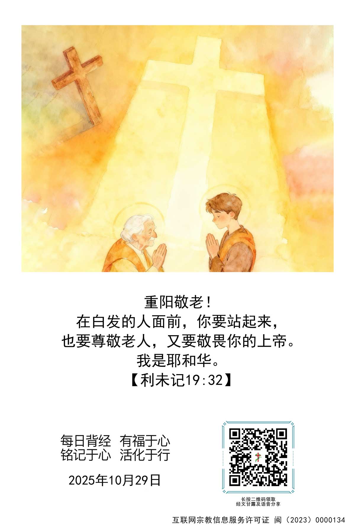 敬老不是单纯的道德义务,而是敬畏上帝的自然流露。当我们真诚地尊敬老人、孝敬长辈,就是在向世界见证:我们所信的上帝,是看重每一个生命、悦纳谦卑与爱心的上帝。这份敬畏,藏在给老人的一杯热茶里,藏在耐心倾听的话语中,更藏在遵行上帝诫命的每一个选择里。