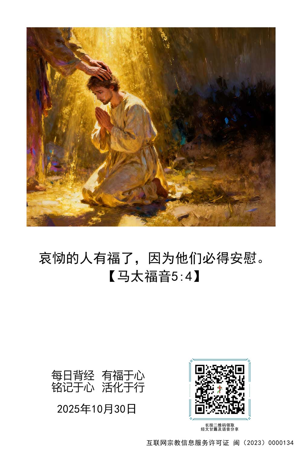 10月30日经文:【马太福音5:4】哀恸的人有福了,因为他们必得安慰。