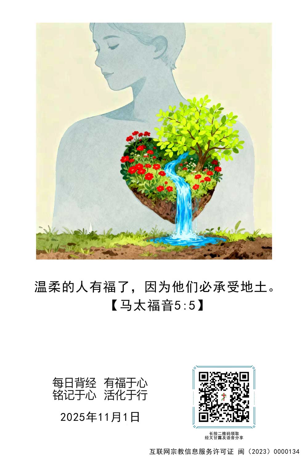 11月1日经文:【马太福音5:5】温柔的人有福了,因为他们必承受地土。
