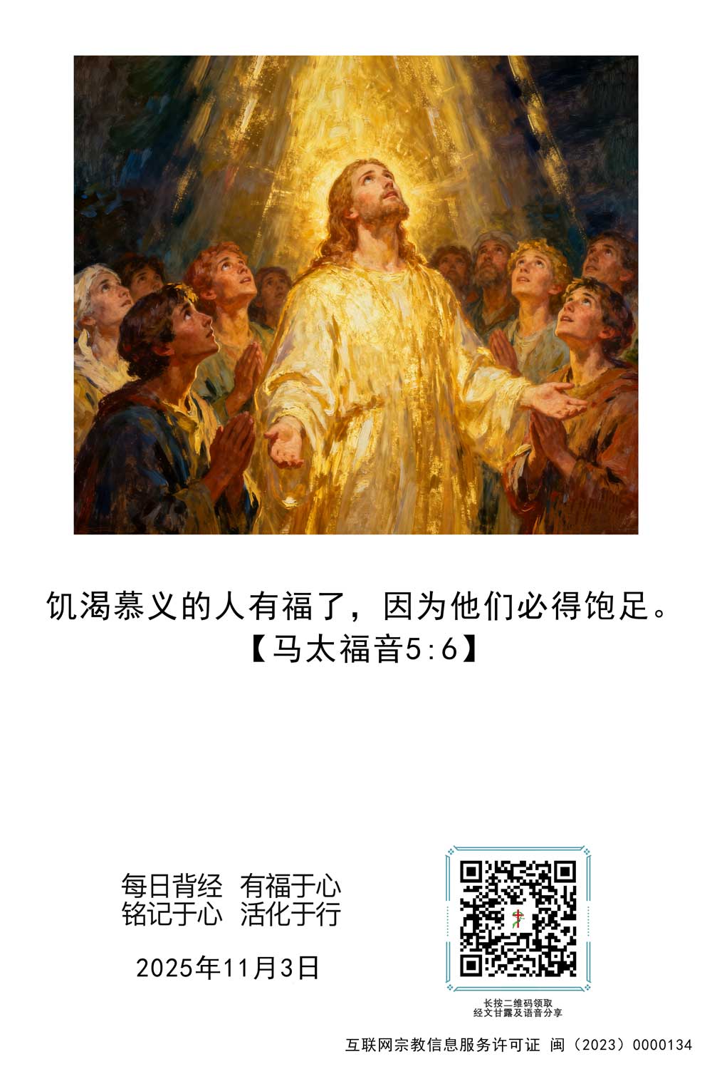 11月3日经文:【马太福音5:6】饥渴慕义的人有福了,因为他们必得饱足。