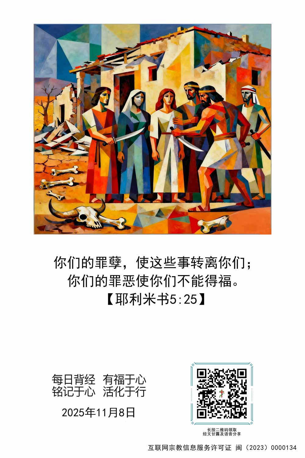 11月8日经文:【耶利米书5:25】你们的罪孽,使这些事转离你们;你们的罪恶使你们不能得福。